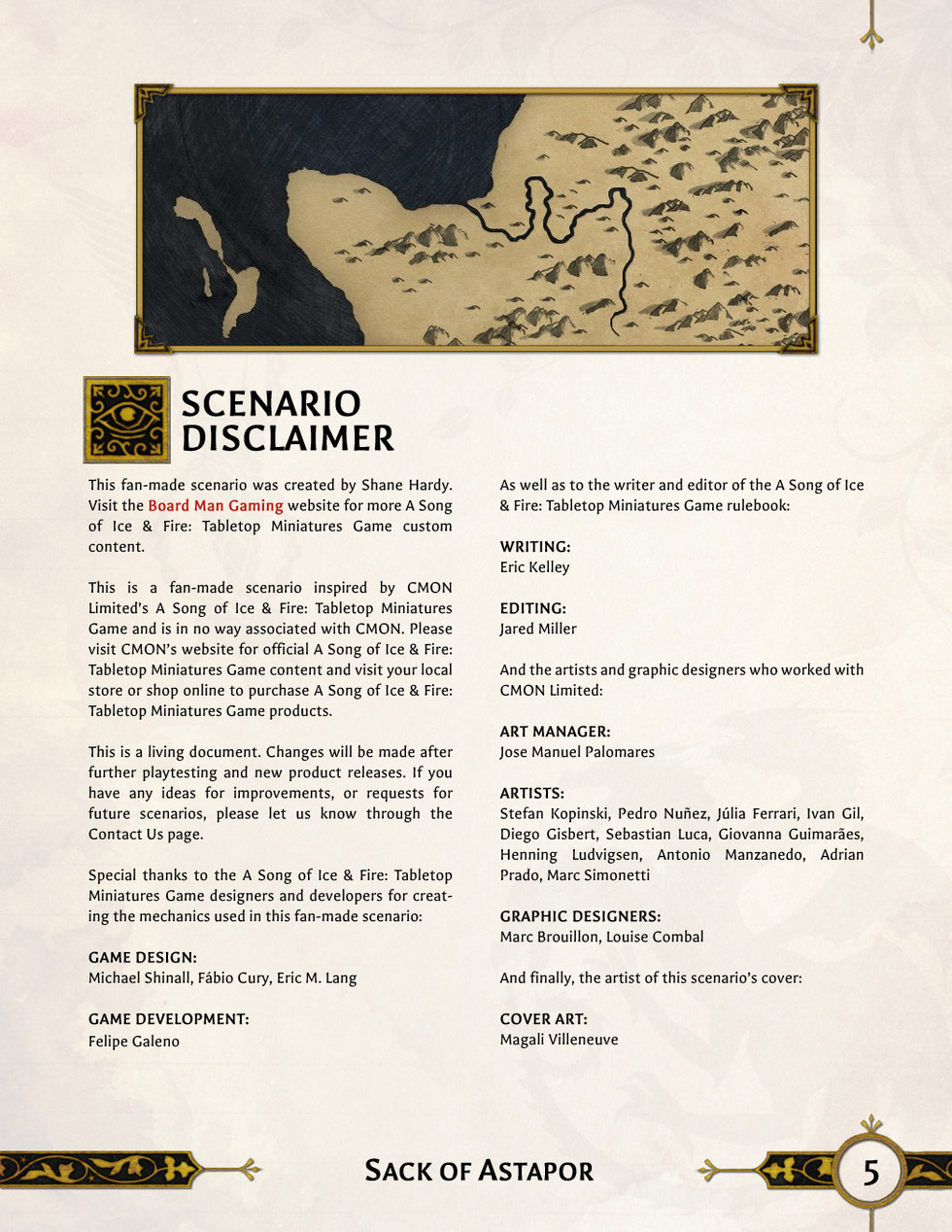 This is a fan-made scenario inspired by CMON Limited’s A Song of Ice & Fire: Tabletop Miniatures Game and is in no way associated with CMON.